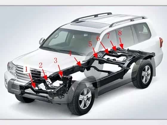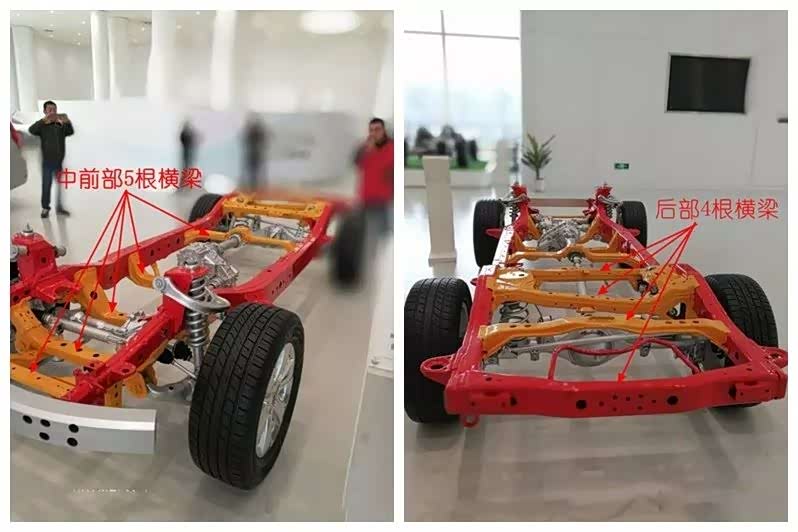 H9的底盘采用2纵9横的整体车桥。横梁数量达到9根,比陆巡2纵8横的结构还要多一根横梁;H9的纵梁也非常粗大,可以说H9的底盘是下足了功夫。
