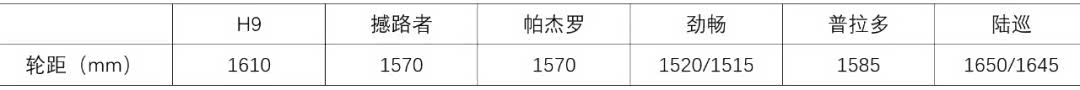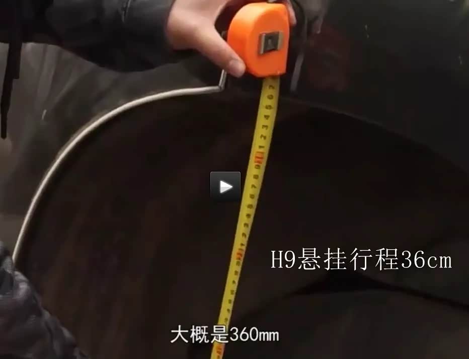 从上表可以看出,H9的轮距在同级别车辆中排位靠前,但比更大一个级别的陆巡还是有差距。陆巡后轮最大行程:半米(太吓人了),H9:36cm,普拉多:32cm。
