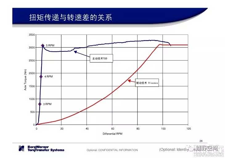 TOD最大的缺点就是前轮输出扭矩小。上一段我为TOD正名可以有“锁”,这一段我要说这个锁劲还是小。我们来一个简单的计算。H9发动机最大扭矩355N·m,经变速箱一档放大4.71倍(ZF 8AT),再经过低速四驱2.48倍扭矩放大,分动箱的扭矩输出最大为355*4.71*2.48=4146N·m,而向前轮最多只能输出1000N·m,仅为总输出扭矩的1/4。一旦超限,多片离合器一定会立刻分离,博格华纳不可能同意让多片离合器带着1000N·m的压力在那里打滑,宁可我负天下人,也不能烧了离合来找我赔。多片离合器一旦分离,前轴将失去动力,轻则玩不了了,干也没用了;重了还有可能毁车伤人。而分时四驱,则可以向前轮输出超过1/2甚至以上的扭矩。