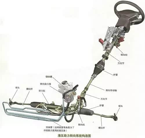 目前汽车上配置的助力转向系统大致可以分为三类,机械式液压助力转向系统、电子液压助力转向系统以及电动助力转向系统。H9的转向系统采用了机械液压助力的形式。机械液压助力系统,采用的是由发动机皮带带动的机械式液压助力泵实现方向助力的。这种助力系统主要特点有: