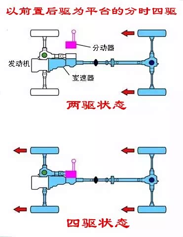 我们常见的四驱形式可以分为三大类:分时四驱、适时四驱、全时四驱。