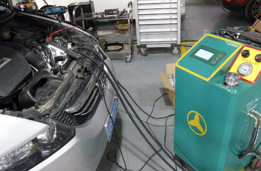 这是目前最彻底的换油方式,先是把旧的油通过重力换油的方式放掉,在通过换油机让新的油在变速箱内循环从而把内部零件无限次的洗漱,最后再加上新的油。
