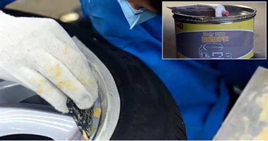 修复轮毂所使用的腻子不是车漆上使用的腻子,它有一个学名叫“原子灰”。原子灰分为好几种类型:有塑料原子灰、玻璃钢原子灰、钣金原子灰等等,其中,钣金原子灰也叫金属原子灰,它是专门用来修补轮毂的。修补时,原子灰要配合相应的固化剂一同使用,这样原子灰才能起到固定作用。原子灰修补完之后还要进行相应的打磨,这样做是为了方便之后的喷漆工序。另外,值得注意的是,原子灰只能修补小面积破损的刮痕,像凹坑比较深的缺陷,需要配合焊铝才能进行修补。