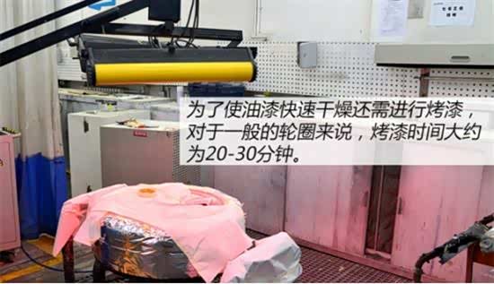 由于各门店使用的油漆不尽相同,在固话方法上可能也有所差别。一般,大多数喷漆都是用烤灯进行固化,也被称为烤漆。还有一些质量更好的油漆,如:UV漆,就是使用紫外线灯照射进行固化的。而无论是那种油漆,对于一般轮毂来说,烤漆时间大约为20-30分钟。(UV漆是Ultraviolet Curing Paint 的英文缩写,即紫外线光固化油漆,也称光引发涂料,光固化涂料。在紫外光的照射下促使引发剂分解,产生自由基,引发树酯反应,瞬间固化成膜,是当前最环保的油漆。)