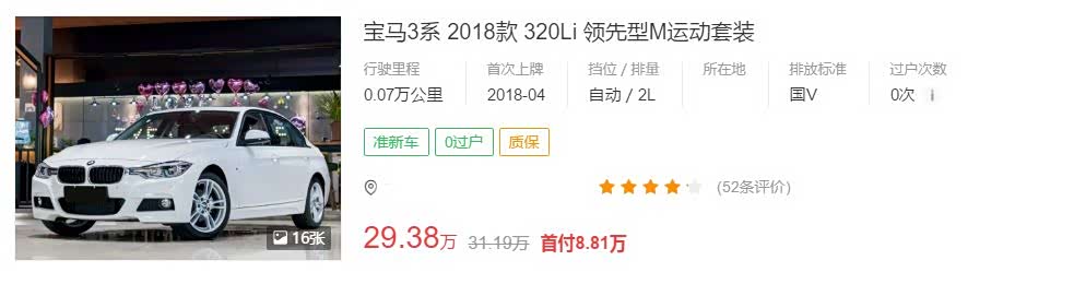 目前二手车市场2018款宝马320 Li领先型M运动套装车型一般都是准新车,行驶里程多为5千-1万公里,售价在28-29万左右(以实际为准),参考现在新车的价格,即使车主开了几天突然想卖了换别的品牌,也不至于太亏。