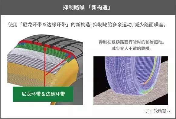 2、使用尼龙环带/边缘环带的新构造,抑制轮胎多余运动,有效减少路面噪音。