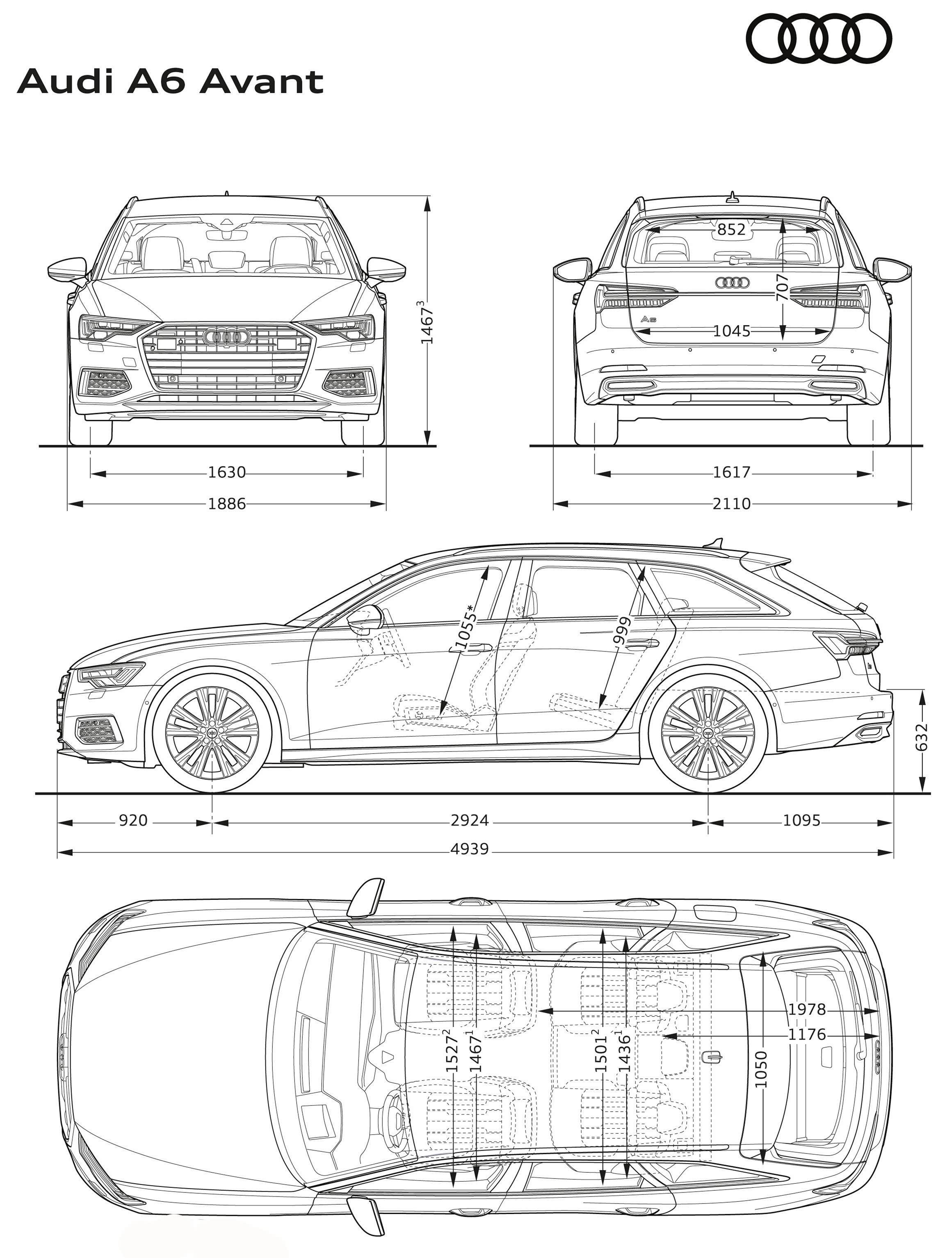 新的A6旅行车没有比它的前任大太多。它的长度增加到4939毫米,宽度增加到1886毫米,高度增加到1467毫米。轴距则增长到2924毫米。