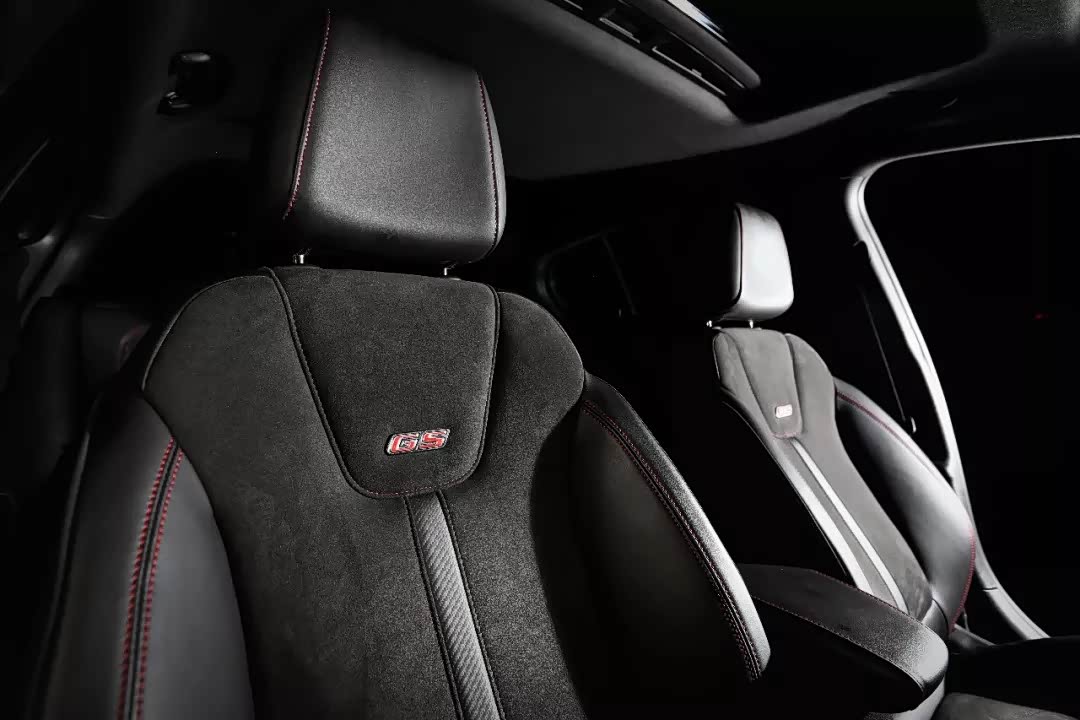 站在车外时我就留意到前排两张运动型座椅,坐上去后将我紧紧夹住,除了“GS”的徽章和红色的缝线,座椅两侧采用真皮而中间采用Alcantara材质,触感比皮质更舒服,在激烈驾驶时提供更多的摩擦力。