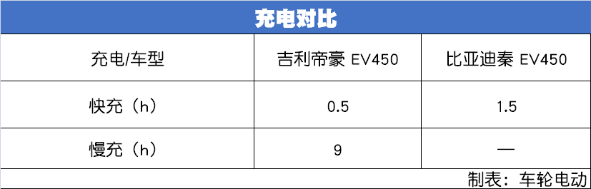 帝豪EV从0-80%快充只要半小时,而电池容量更大的秦EV,理论上充电时间会长一点,但是1.5小时的快充时间仍然难令人满意,如果缩短到40分钟左右,才能满足真正快充时的需求。