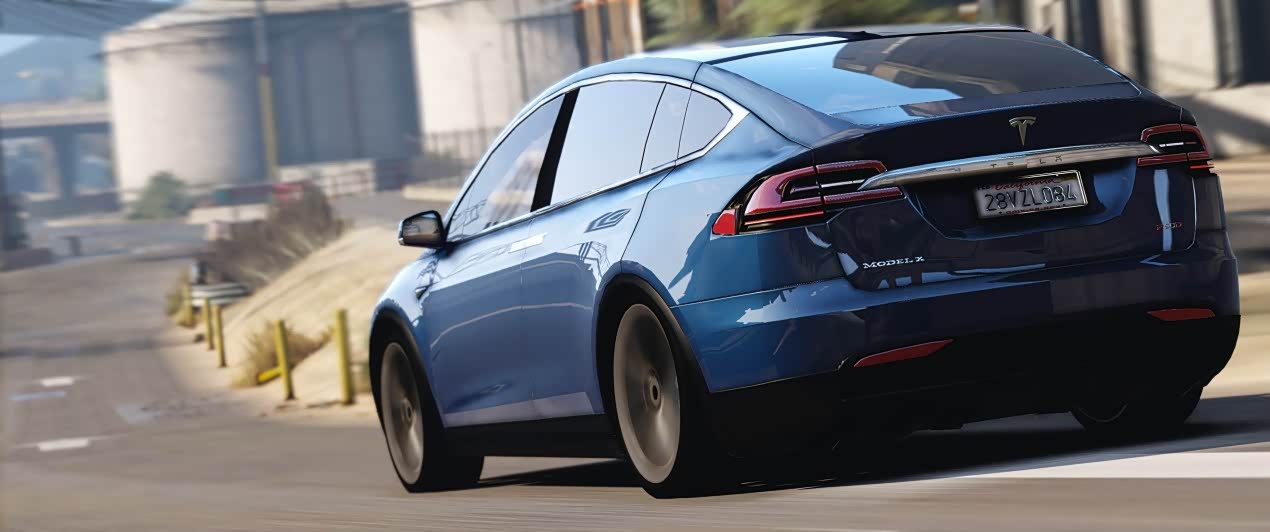 MODEL X的尾部设计圆润饱满,回旋式灯组镶嵌于内的感觉自然,贯穿式的镀络条装饰件突出产品品牌,且MODEL X、TESLA、车型型号以等三角形式自然展现。