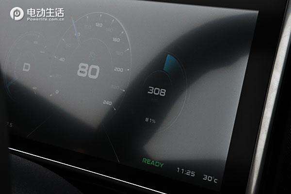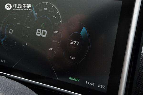 按照80km/h的速度行驶20分钟后,剩余续航里程表是308-277=31km(包括能量回收),所用电量8%(81-73%),等于是用了6.3度跑了这个里程数,基本相辅相成,并没有因车速而增加电耗。