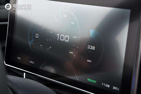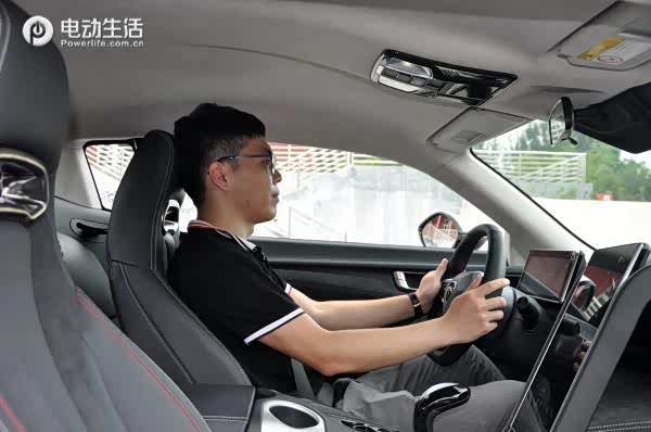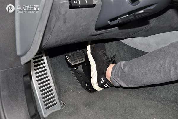 而刹车踏板则兼顾着制动与能量回收职责,踏板非常轻,脚尖轻点就会有刹车效果,你会感到大幅的刹车圆盘受到摩擦,车辆随之线性的下调车速,降速快慢看你脚下动作而定,效果很灵敏,初次驾驶需适应。