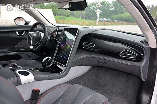 车辆采用的是上海卡耐电芯,在华冠汽车下属的华特时代公司总装。电池总电量达78.8度(kWh),并采用水冷系统进行温控,保证了电池的正常使用温度,而且更利于缩短充电时间,使车辆综合续航里程为380公里,29个碳纤维复合材料零部件总重量仅为46.7kg;全铝合金框架式车身仅重234kg,整车最大允许质量为2110kg,整备质量之前透露的是1960kg。