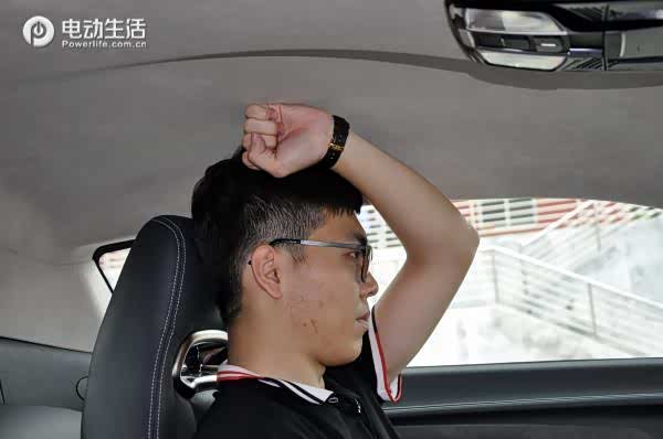 体验者身高178cm,将座椅调至最低腿部空间还比较舒服,头部空间有一拳距离,总体来说表现让人欣慰,在座椅的支撑力方面我俩一致认为很不错。