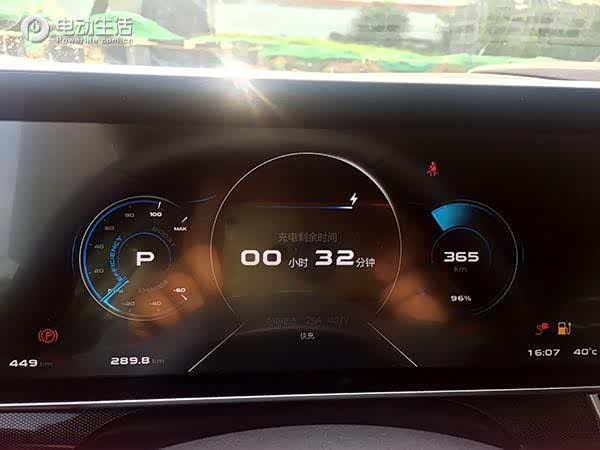 车辆的仪表盘上会显示车辆剩余充电时间、充电电流、充电电压,快慢充状态等。插抢扫码后,让人刮目相看的事情发生了,车辆没有没有充电缓冲时间,上来电流直接到92.3A,这一数值非常惊人,而且持续保持这一充电速度。