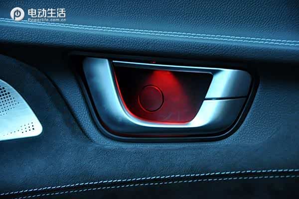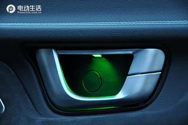 车辆没有上锁,车内氛围灯是绿色,上锁之后是红色,如果您担心车辆没有锁上,从此不用再拉一下车门证实了,看车门拉手氛围灯就知道了。另外手套箱内的灯光也很有意思,网格式设计让车辆有了上海女人的优雅品味。