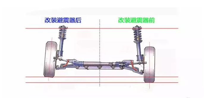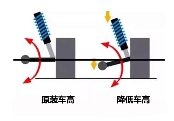 由于降低车身之后,防倾杆会随着下摆臂上翘而向上摆动,这样会让防倾杆的活动行程缩短,同时,下摆臂上摆也会改变其自身的受力力矩,造成车身的异常跳动,当快速经过在坑洞或突起的路面时,将感受到更大的弹跳。