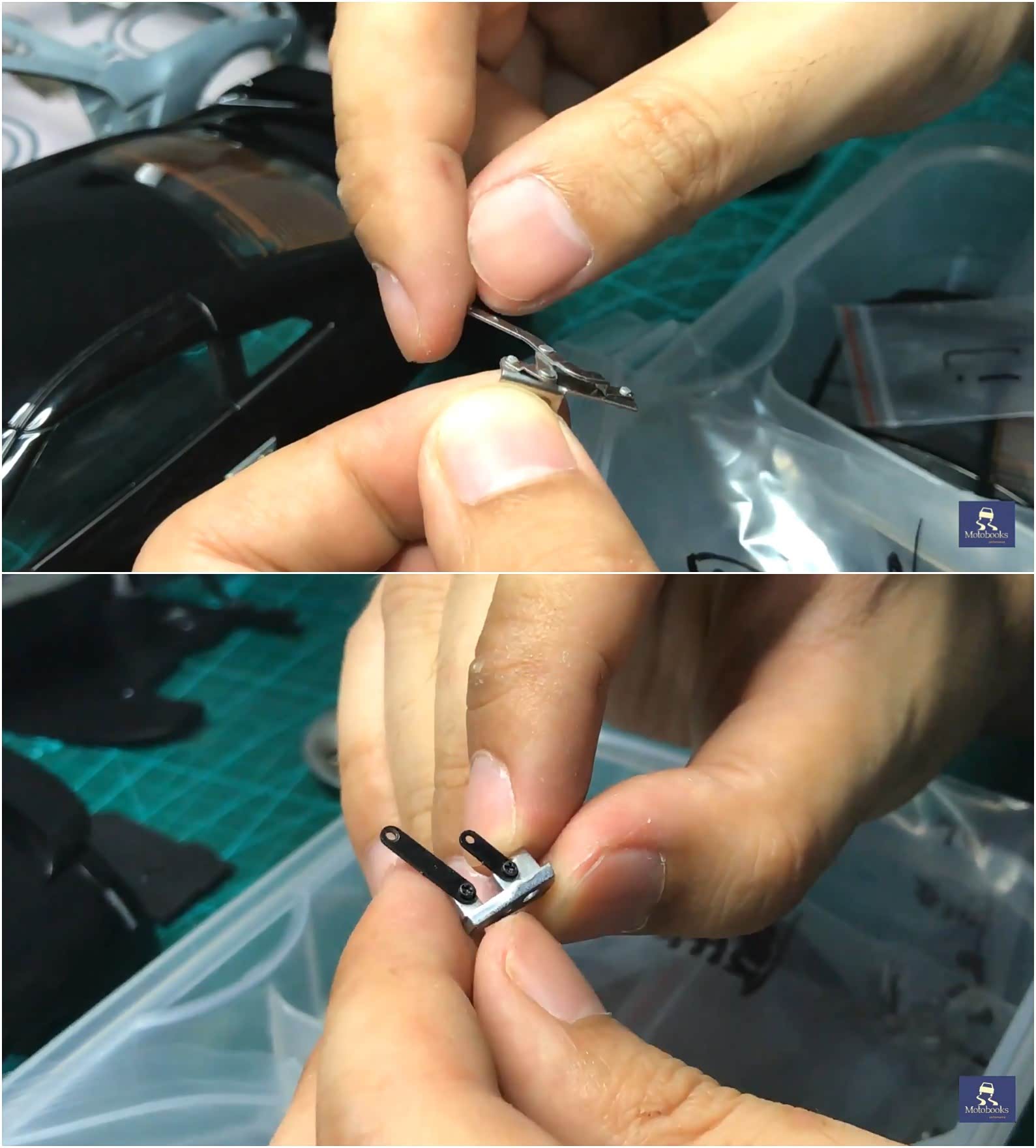 我们顺便还看了看前、后盖铰链零件的结构。如果你有模型改色的需求,为了更好的施工体验,这些小配件必须拆掉。需要注意的是部分塑料零件的固定方式比较特别,要留神保证其完整性。当然,也千万不要忘了这些小东西安装回去的顺序和方式 ... 更要分门别类收纳整齐,以免回组的时候找不着。