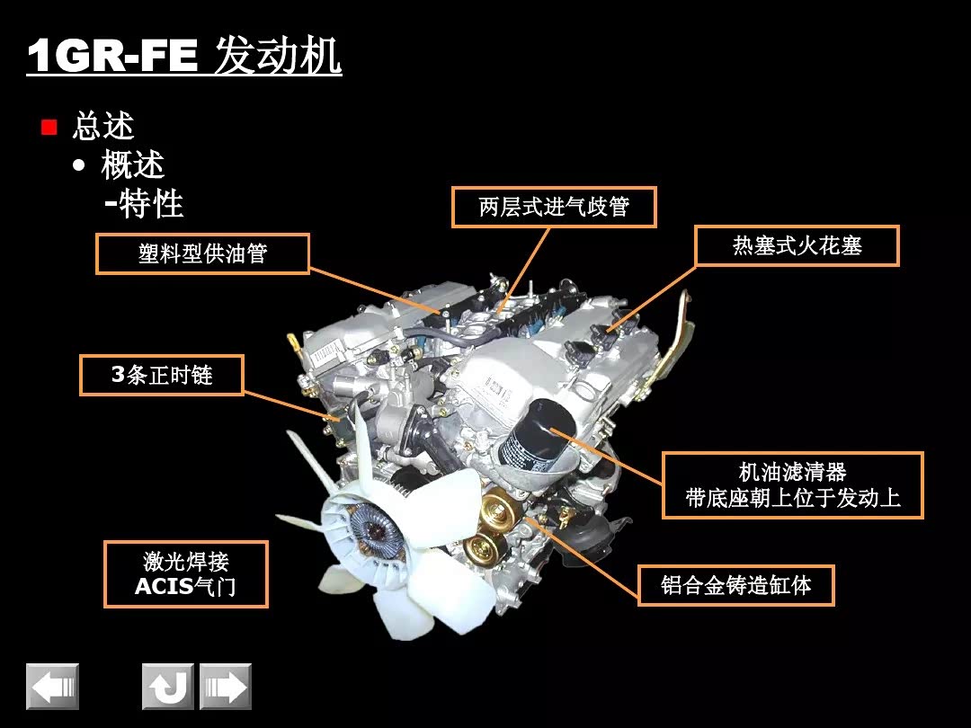 4.0L发动机是普拉多得以在越野圈扬名立万的最大功臣。发动机型号1GR-FE,气缸容积(cc)3956,缸径94冲程95,最大功率(kW)202(5600转),最大扭矩(Nm)381(4400转),发动机特有技术VVT-i,EFI,标95号汽油,但加注92号油也无明显变化。发动机为全铝发动机以减轻重量。