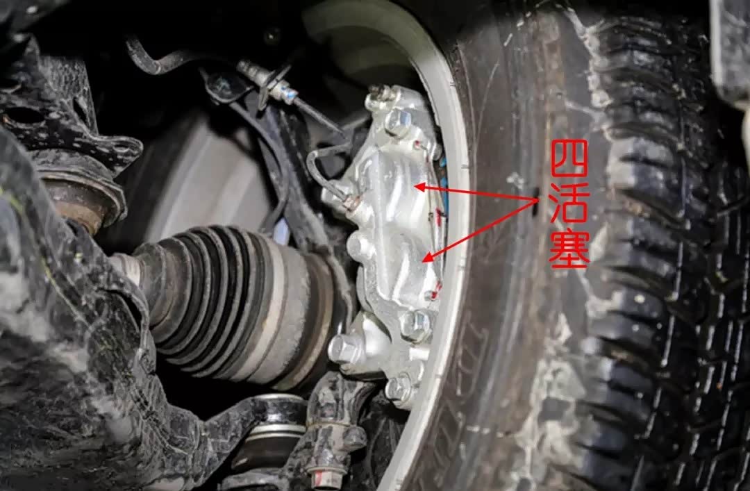 普拉多前轮配备了同级别车辆最高的四活塞刹车卡钳。一般家用轿车都是单活塞盘式刹车。运动房车/性能车则会升级至双活塞提供更好的刹车表现。而普拉多直接配备四活塞卡钳,这一点值得称赞。刹车卡钳的活塞越多,刹车力度越大、越稳定、刹车控制越线性。另外前刹车盘的防尘套也是一个小但是非常有用的设计。越野车玩沙玩泥,能极大的减少异物侵扰刹车系统。这些细节都是丰田多年越野车开发经验的积累,正是对每一个细节的专注,才造就了陆巡,普拉多的可靠性传说。