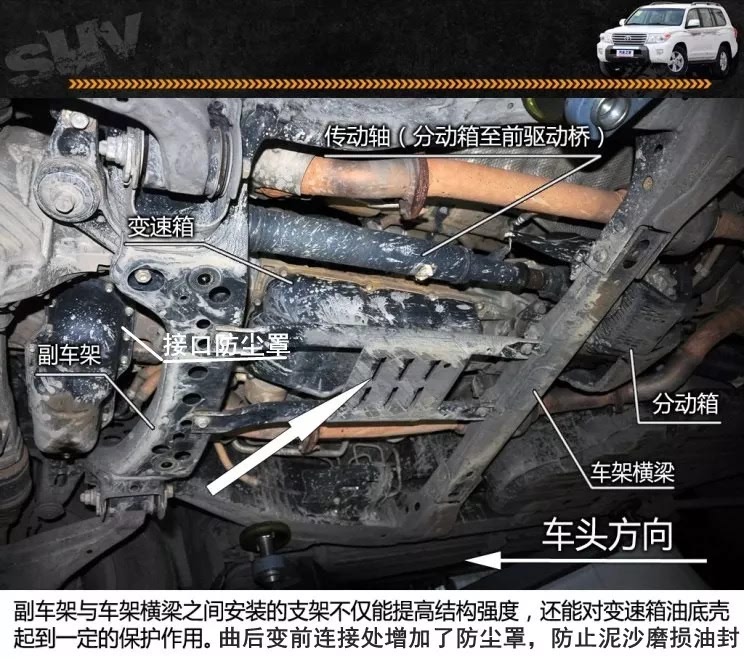 陆巡油箱,基本与大梁平齐↑ 普拉多油箱,下沿突出大梁较多↓
