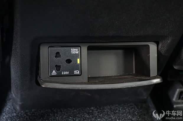 图:后排也设置了出风口,而且下方有个220V电源插口,如果能来个USB会更方便一些。