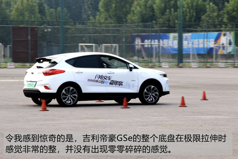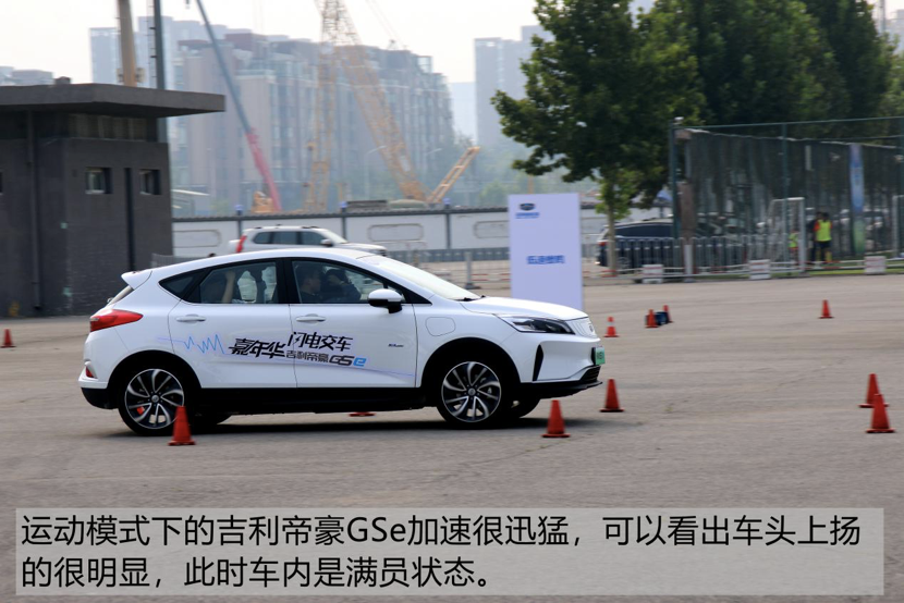 因为此次活动为场地试驾,所以长途驾驶感受是无从得知的,只是做了简单的百米加速以及紧急变线的测试。加速方面,吉利帝豪GSe在运动模式下非常迅猛,尤其是在中后段的加速。普通模式下,整体加速感很顺畅且非常柔和,松开油门后有很明显的动力回收制动感。