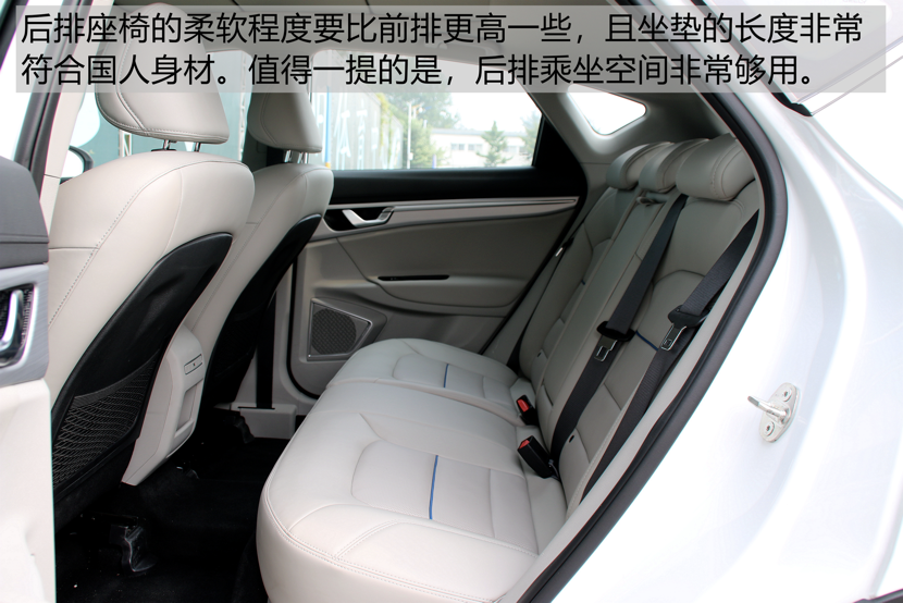 后排座椅的舒适度要比前排更好一些,但坐姿要比前排低很多,我个人更喜欢剧院座椅的感受。坐垫的长度非常符合国人的身材特点,腿部承托感很好。非常值得一提的是,后排乘坐空间在我调整好前排座椅后,依旧非常够用。