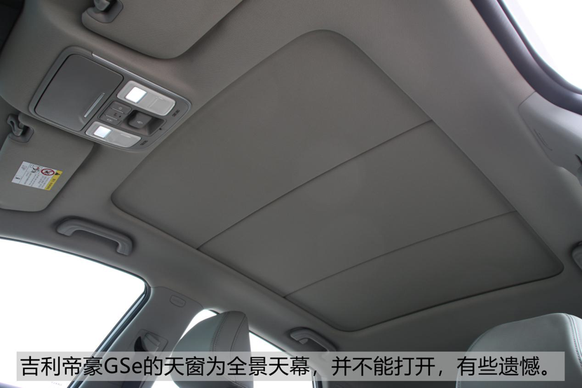 吉利帝豪GSe的天窗为全景天幕,仅仅可以打开遮阳帘,有些遗憾了。
