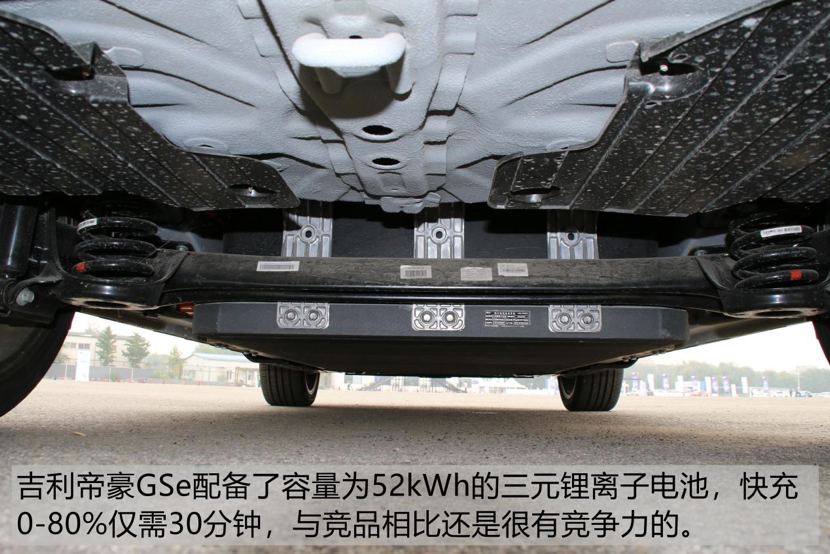 吉利帝豪GSe配备了容量为52kWh的三元锂离子电池,快充到80%仅需要30分钟,这个速度算是同级别中非常快的了。