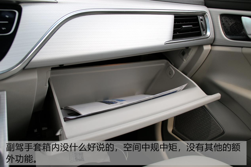 手套箱没什么亮点,空间中规中矩,并没有防滑处理,也没有其他的额外功能。