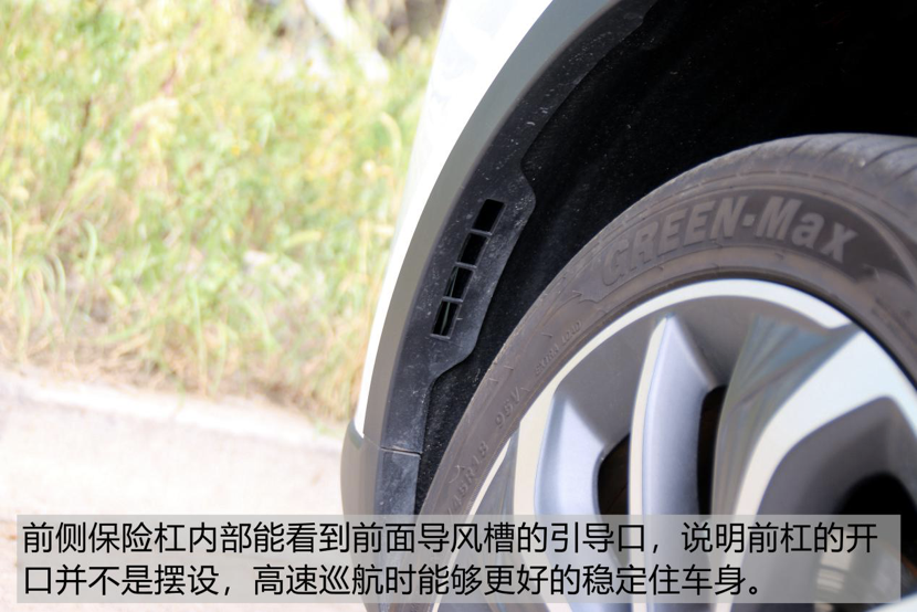 从侧面能看到前杠内部的导风槽引导口,这么小的一个设计可以说并不是很抢眼,但后面所需要付出的研发费用可不是几百块那么简单的。而且,这个设计虽看着不起眼,但是可以在车辆高速行驶时更好的稳定住侧面的乱流,以起到稳定车身的作用,快去看看你的车有没有吧!