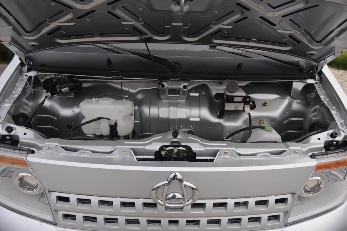 座椅下面安装的是发动机,和普通的微面布置形式基本相同。该车采用了排量为1.5L的哈尔滨东安动力汽油发动机,采用的是三菱技术,在这种级别的车型上应用的比较广泛。该机功率为112马力,最大扭矩为142N.m。与其匹配的是5挡变速箱,也是这个级别车型的标配,挂挡方式和轿车基本相同。