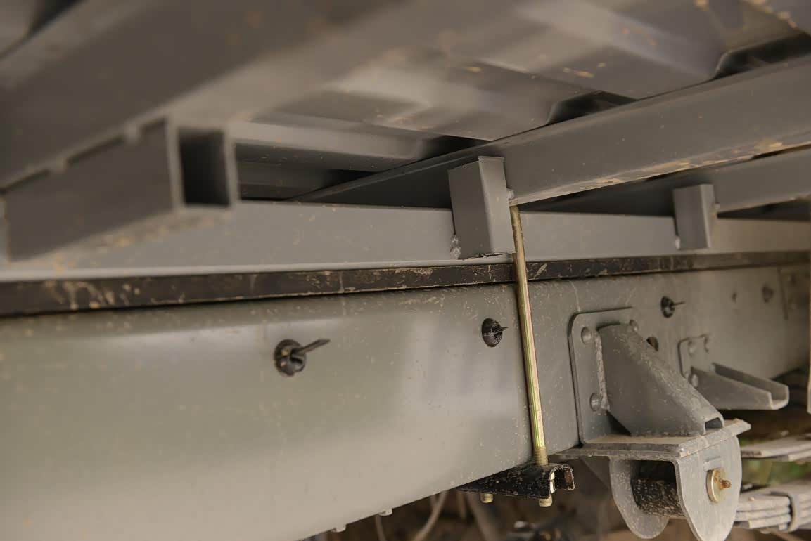 原装平板车厢的四周均安装了这样的橡胶缓冲垫,放下侧板的时候不会与车厢产生撞击。