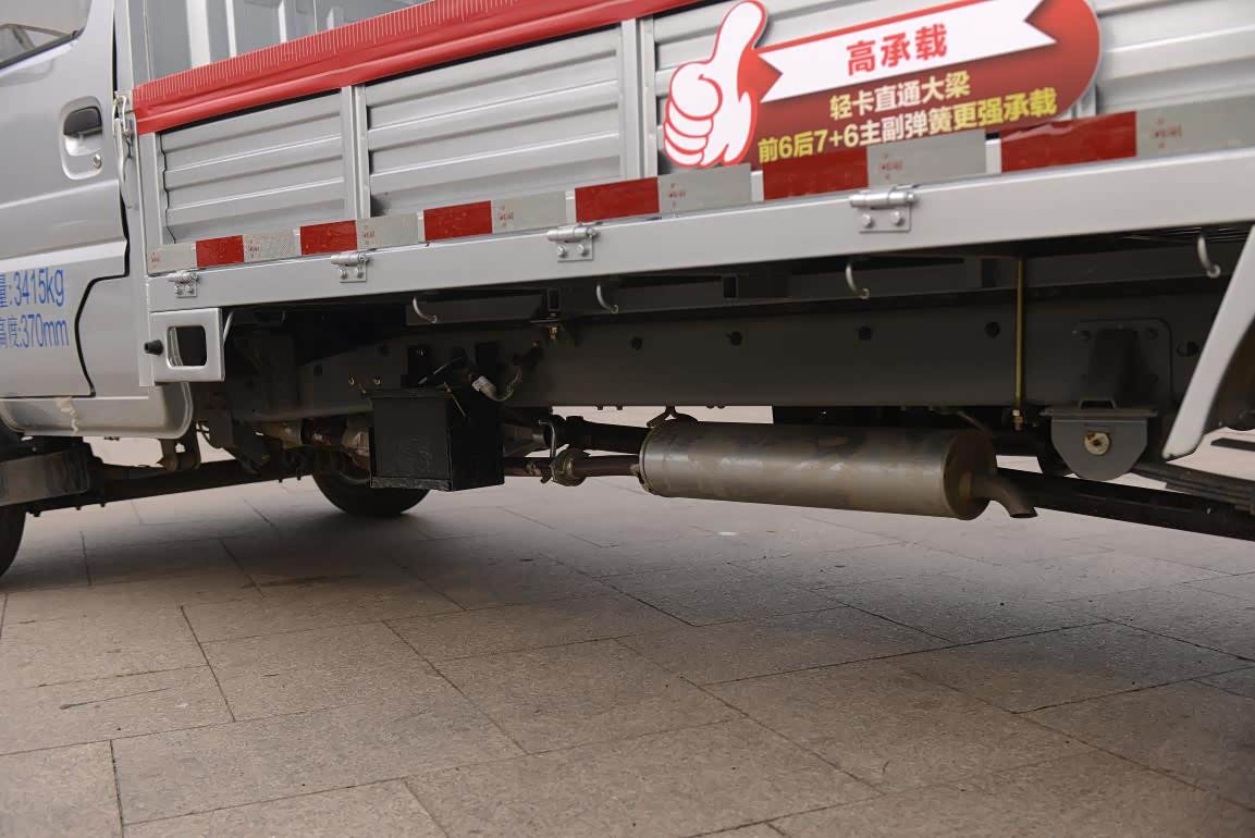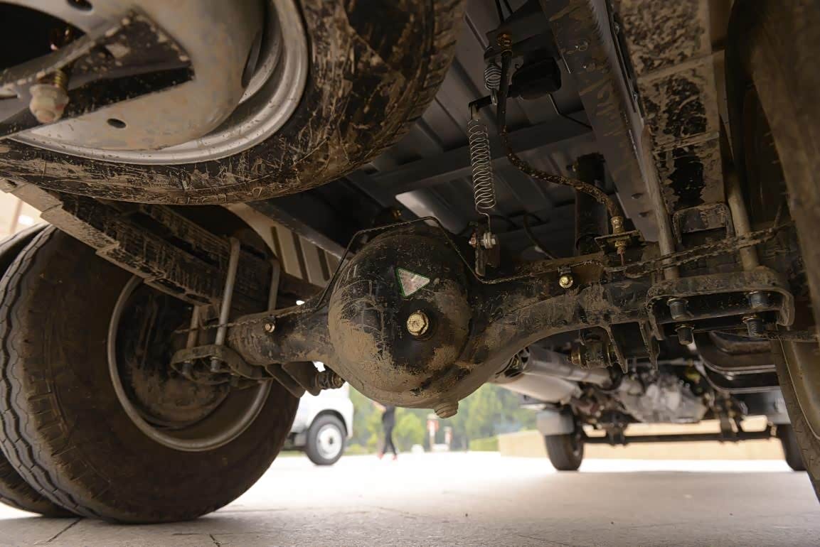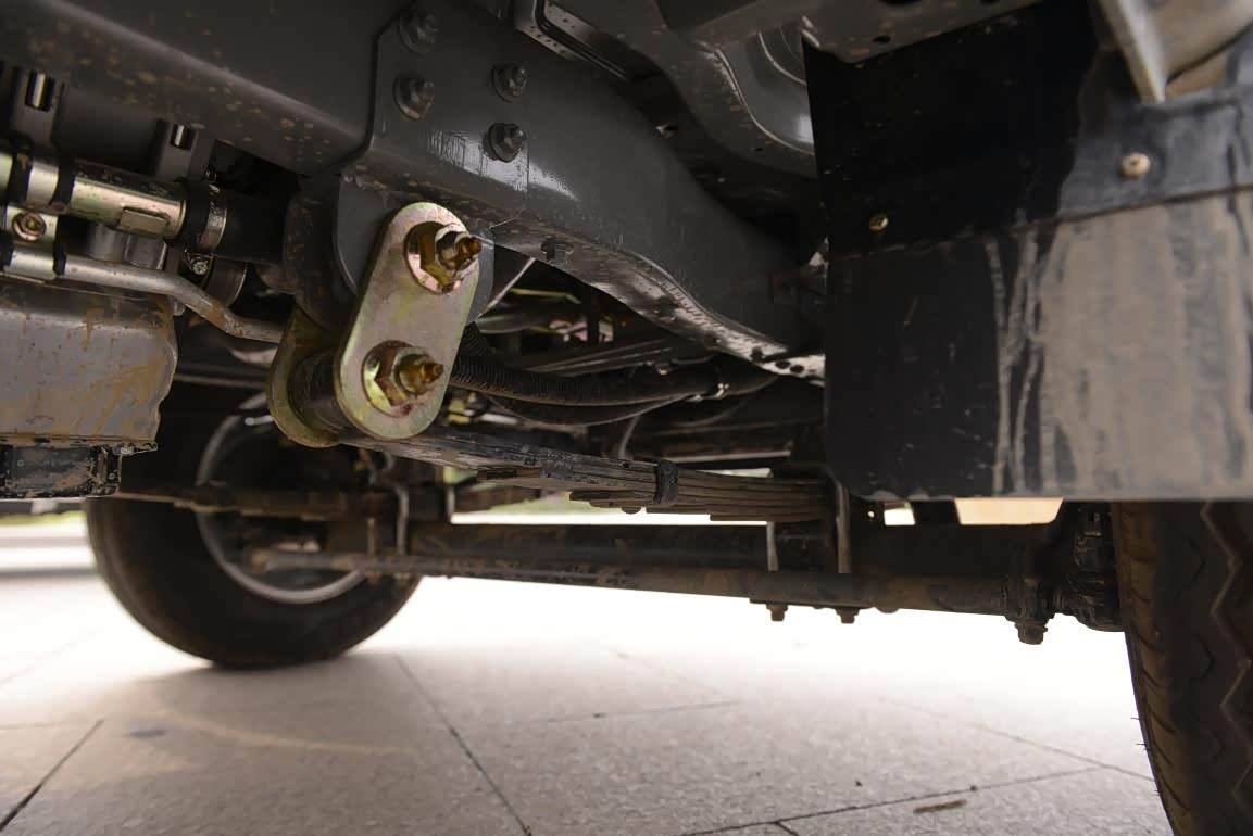 前桥为工字型转向桥,6片板簧悬挂。后桥则使用了曙光的冲焊桥,采用了7+6片板簧保证车辆的运载能力。长安神骐T20L的底盘区别于同级别尺寸的微卡,其使用了同卡车一般的非承载结构,除此之外整体桥和板簧的选用也突出了其运载能力超强的特点。