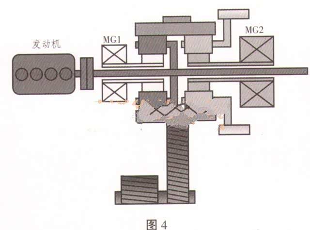 (2)MG2。EV模式运行时,作电动机,独立驱动汽车;汽车加速和需要辅助功率时,作电动机;汽车中等速度巡航时,发动机输出功率较低,MG1反转作电动机,MG2作发电机,对电池充电和对MGI供电;制动时发电;倒车时,反向驱动汽车。