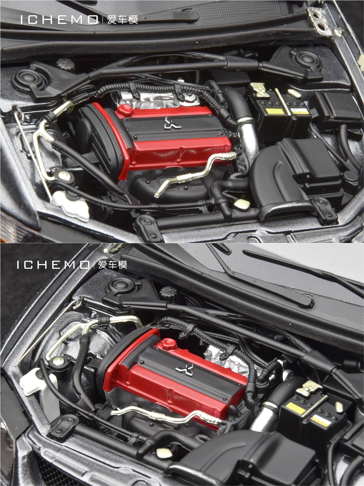 尽管从模型底盘部分可以看到油底壳等细节表达,但开箱机器人很负责任地告诉你:这枚 “4G63” 不是完全独立的结构。