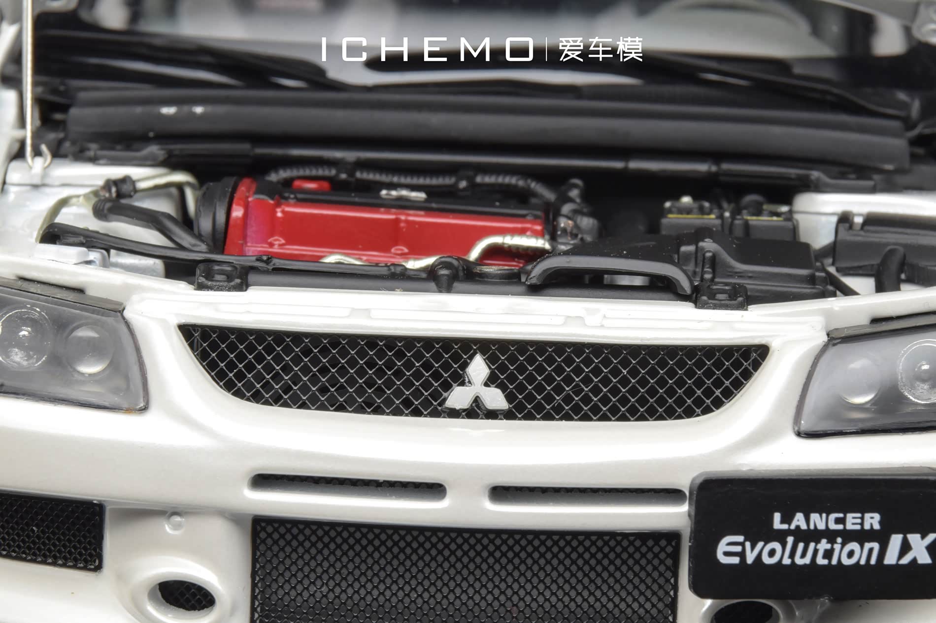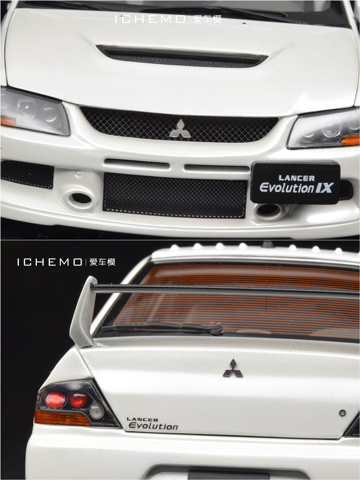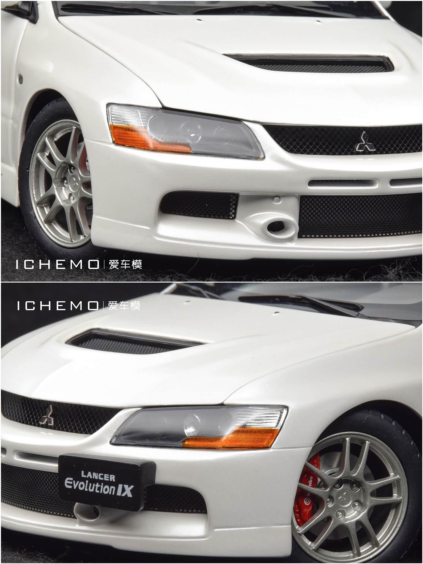 模型车型还原的是大名鼎鼎的 EVO 9 代!本次开箱报告将以珍珠白色(样品)为主角介绍工艺细节。Super A 表示该车模拥有三菱 Mitsubishi 方面的官方授权。