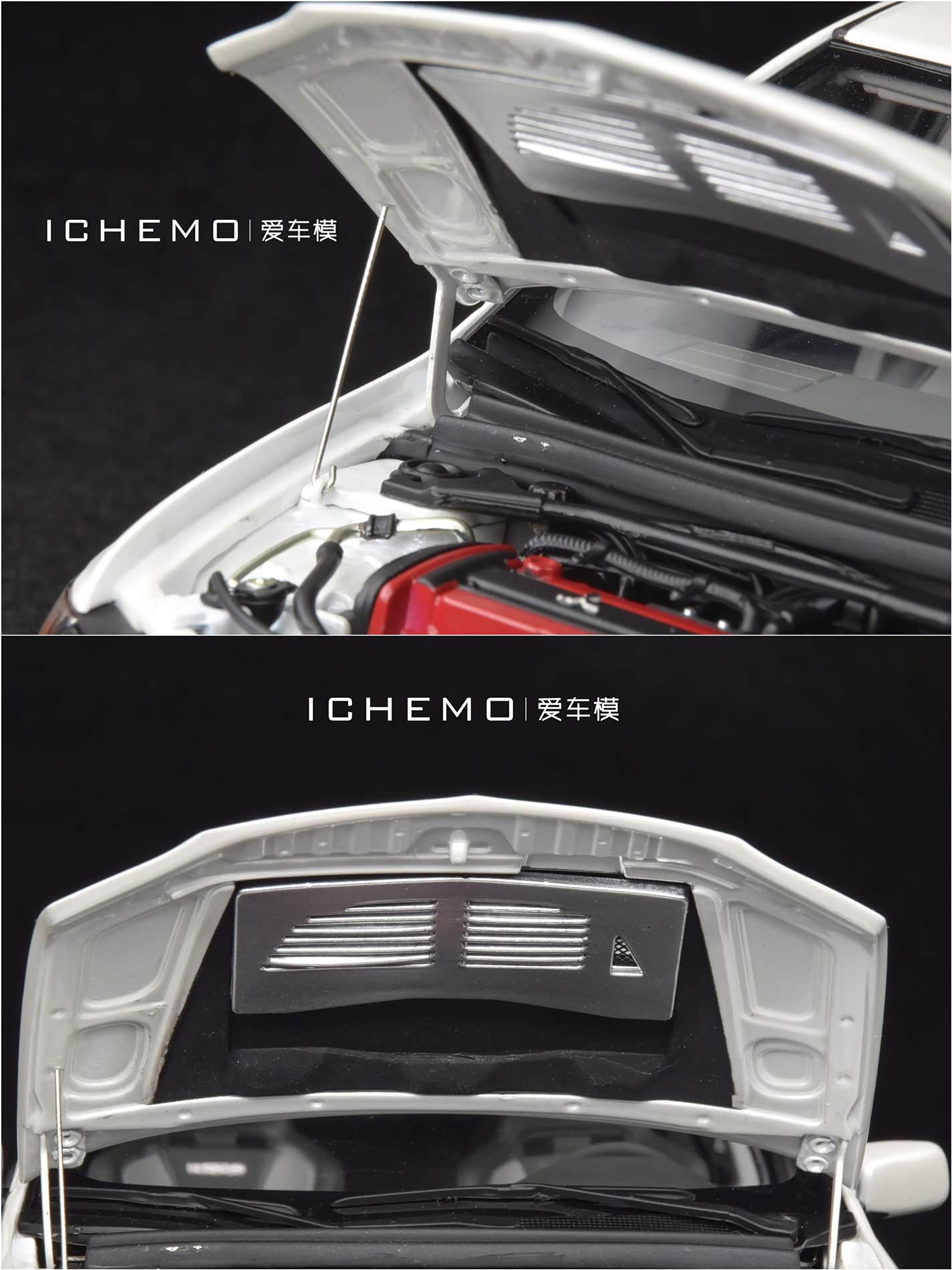 模型发动机盖与模型车体采用金属连杆连接。值得一提的是,样品模型此处与模型车体同色。发动机舱内右侧有金属材质支撑杆;发动机盖零件负面有龙骨细节刻画、分体独立的散热孔零件以及隔热棉细节。