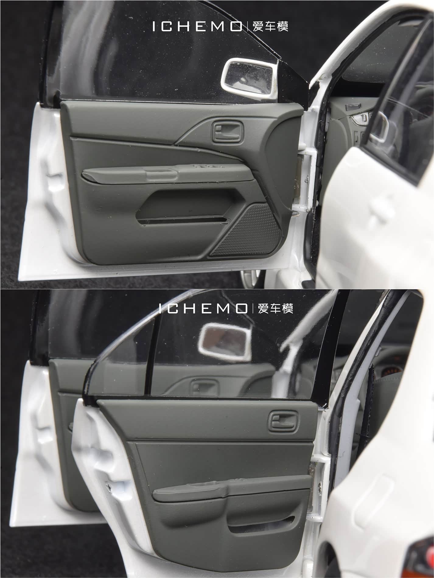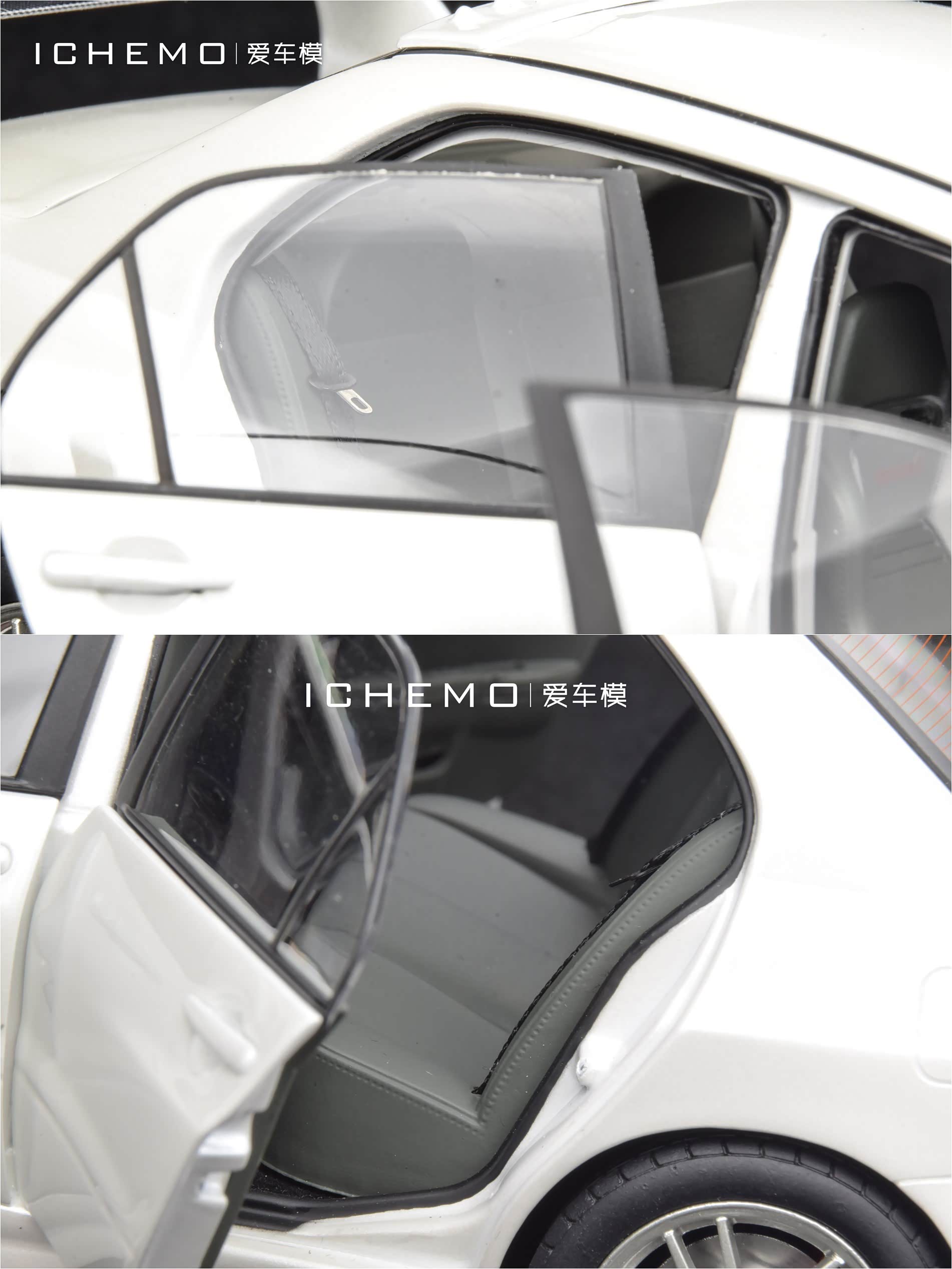 能打开模型车门零件,就能更完整地欣赏模型车内饰部分的细节工艺。三台不同车身配色的样品模型均采用灰色基调的内饰配色方案。