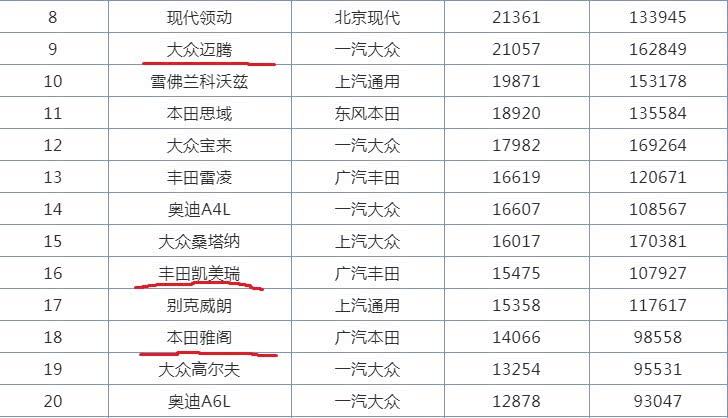 从8月的国内汽车销量数据上看,中级车市场又回到了大众与丰田、本田相竞争的局面。
