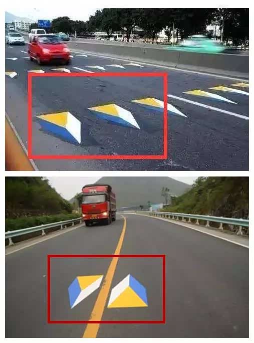 这种彩色标线比较少见,很多车主不一定见过。看上去,它就像两块在路面凸起的石墩,作用是提醒车主不要超车。因此,你一旦遇到这种标线,千万不要超车,不然的话,可能会被定点抓拍,从而扣分、罚款。如果因超车引发交通事故,还会承担主要责任。