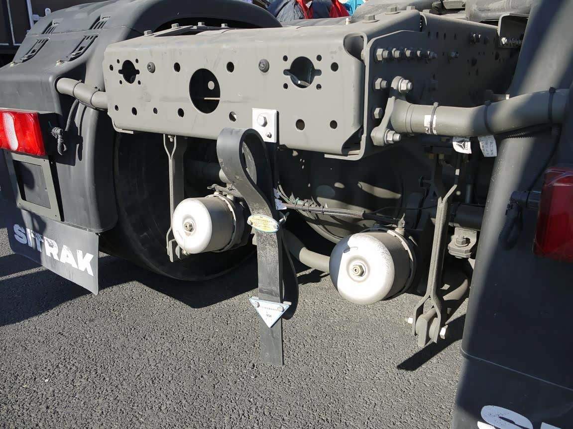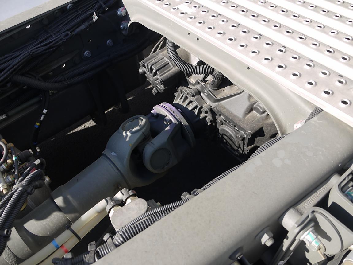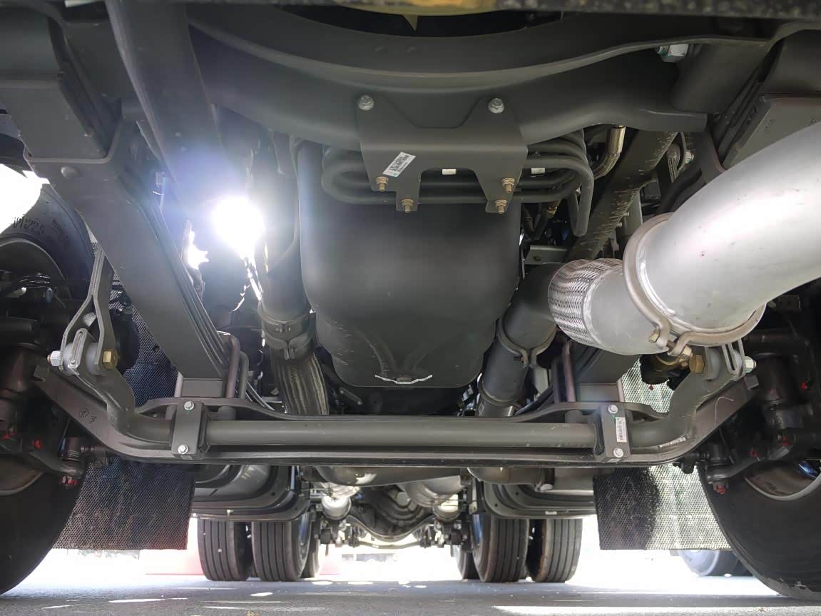 后桥采用V形稳定杆,我们还可以看到尾部的储气筒隐藏在大梁内侧,一方面提高车辆美观度,另一方面也能很好的保护尾部储气筒。