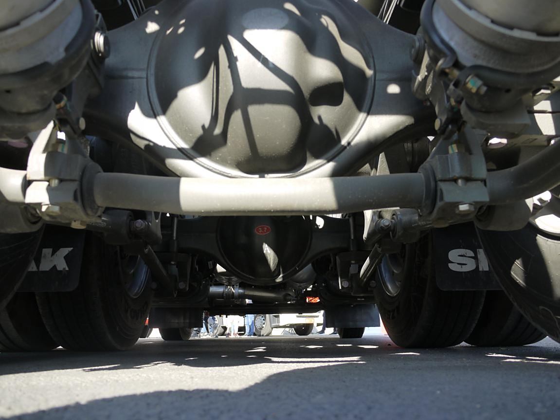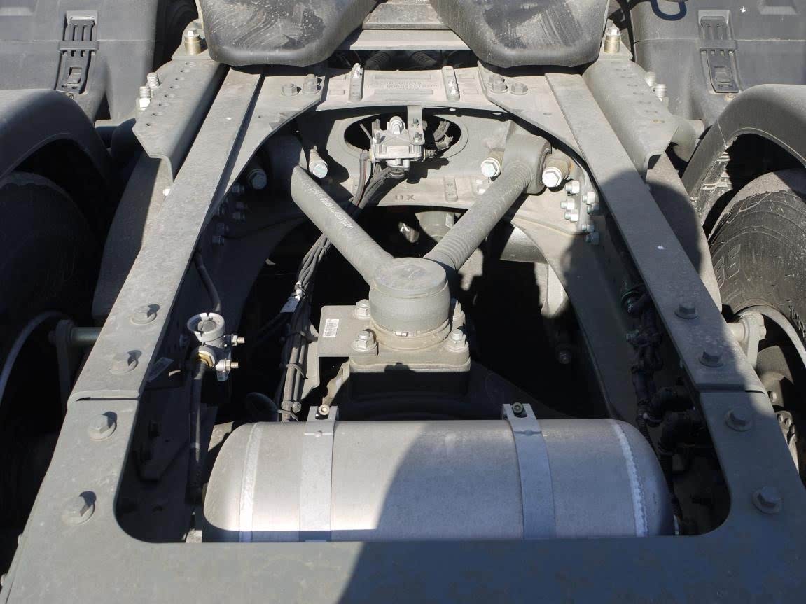 与440马力发动机、采埃孚16挡变速箱匹配的是MAN技术的MCY11双联动后桥,单根车桥的负重量为11吨,主减速比为3.7。出于安全考虑,法规要求危化品运输车辆限速80km/h,这套配置在满足危化运输需求的同时,也能保证不错的经济性。