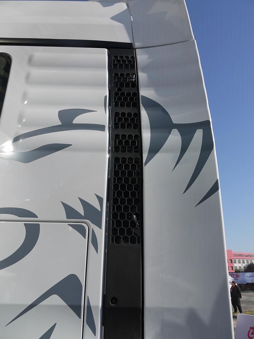 延续了高位进气孔紧贴着驾驶室的设计,进气孔为蜂窝状造型,驾驶室的美观性大大提高。