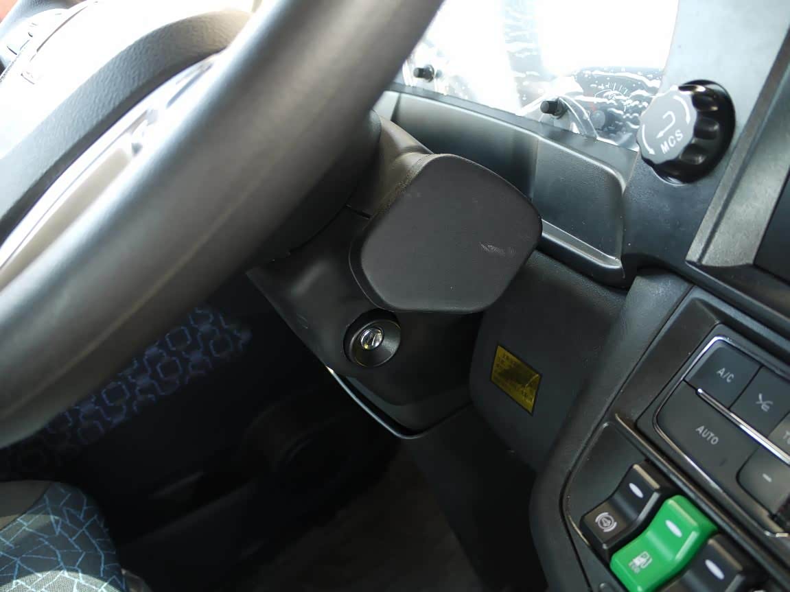 位于座椅右侧的挡位操作区域,可以看到采埃孚的变速箱挡杆。中间的是主挂车制动,造型有所不同。最后面的则是储物槽,以及一排按钮拓展槽。