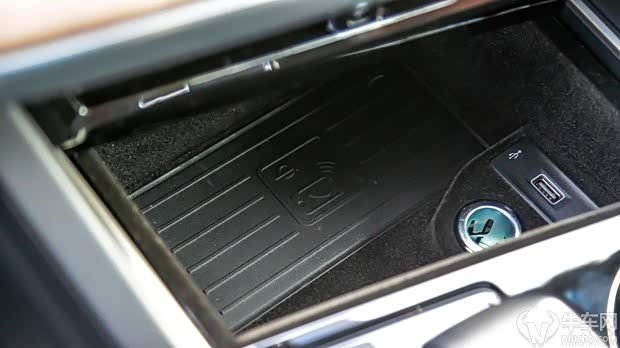 在档把前方的储物格支持无线充电功能,并配有点烟器和一个USB电源接口,相比于把USB接口它放在中央扶手箱内,个人感觉还是这样的方式较为便捷,前提是得对混乱的充电线没有反感。