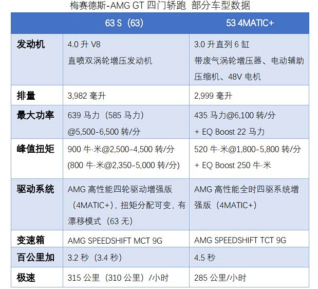 简单来说,CLS从现行的第三代开始,AMG车型中目前只有53系列,AMG GT四门轿跑才有超强的63系列。可以说,AMG GT四门轿跑车更倾向纯性能定位,它已经不是披着羊皮的狼,它就是狼!