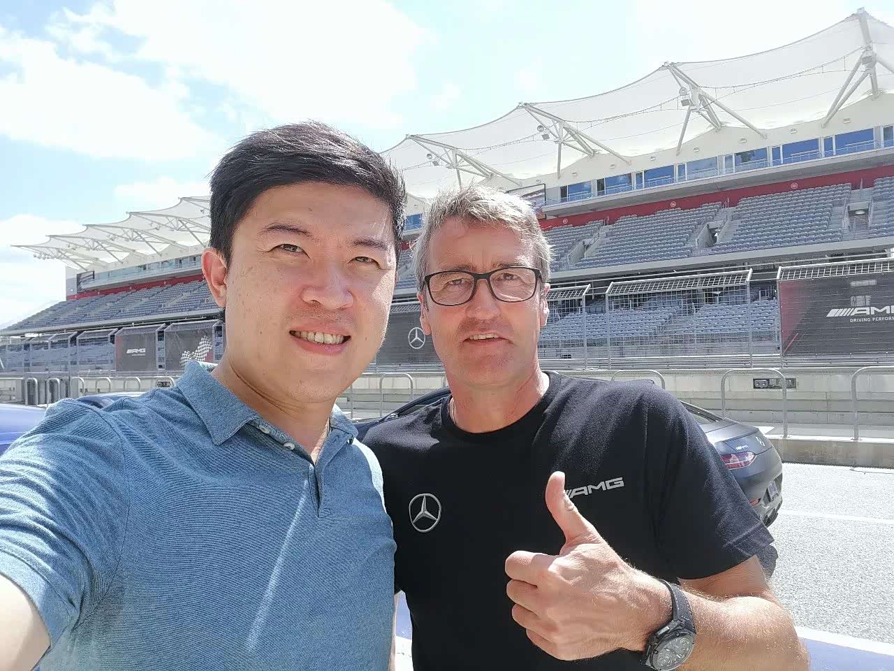 这次试车大家是可以无限次报名排队的,我前后试了三次。最后一次我全程紧跟在领头车身后,这时我开始明白施耐德大胆地领头速度以及AMG选择这个高速刁钻场地的意图。因为他们有信心,所以也希望大家能充分体会这款高性能大尺寸四门轿跑的功底。