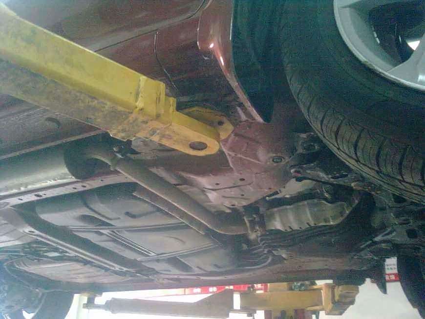 后悬架还是有很大的不同的,最直观的就是扭力梁的形状明显不同,一个是三角形的一个是四方形的。捷达的三角形结构在强度上不是非常的强,所以可以看见在旁边多加了一个防倾杆,而锋范则是没有采用这样的设计。从整体来看,锋范的底盘防护性做的明显要比捷达的好,包裹的范围比较的大,这样相对来说也更加的稳定。而且排气管的位置设定两辆车也完全不同,捷达的是在中间,而锋范的则是在边上,如此一来对于车内的空间也是有着一定影响的。